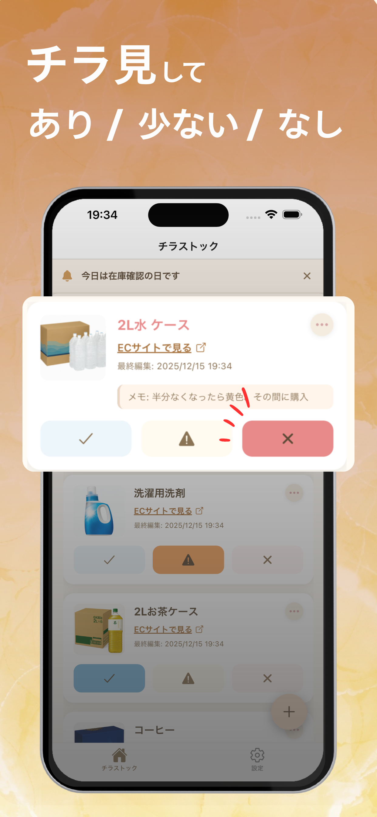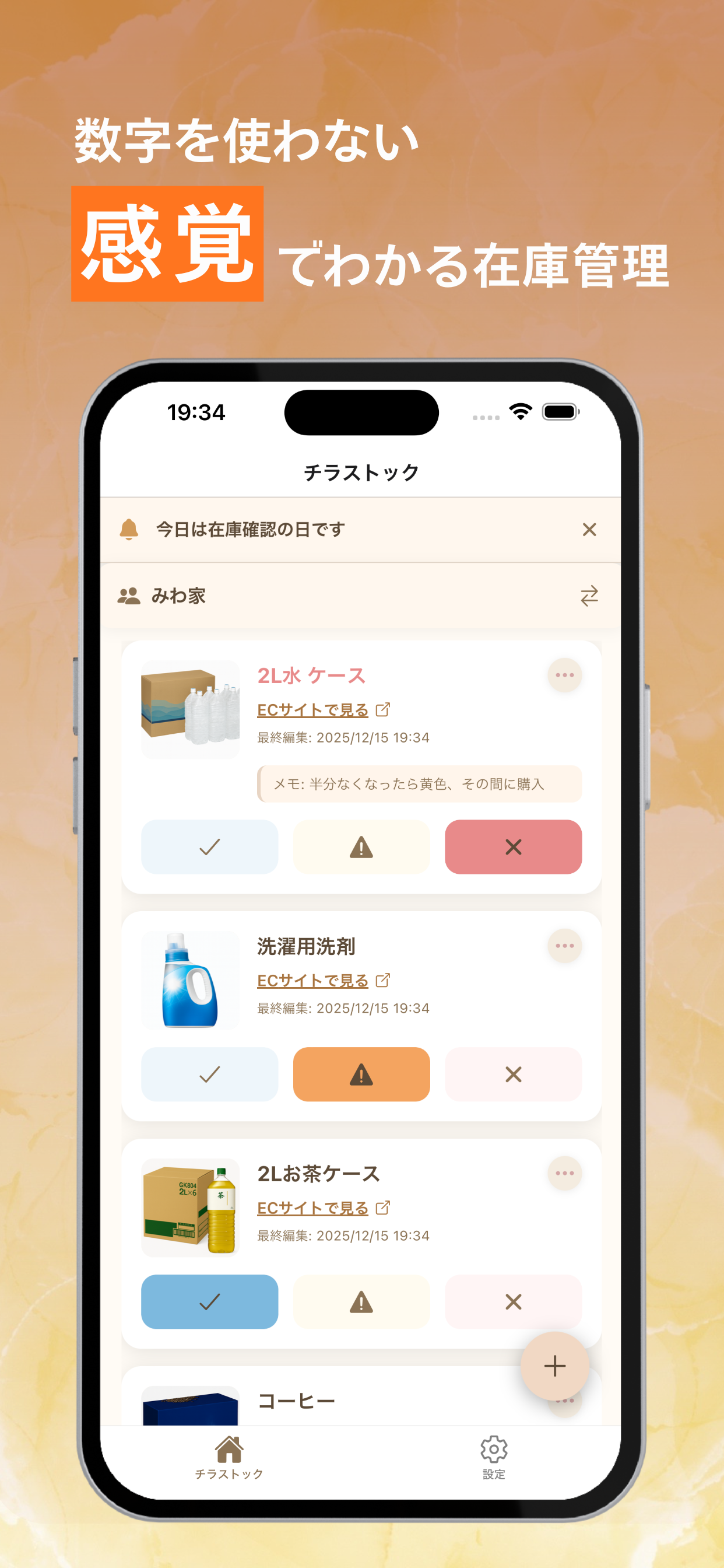 在庫状態を直感的に切り替え。家族全員が同じルールで運用できます。